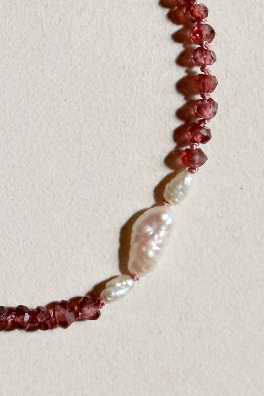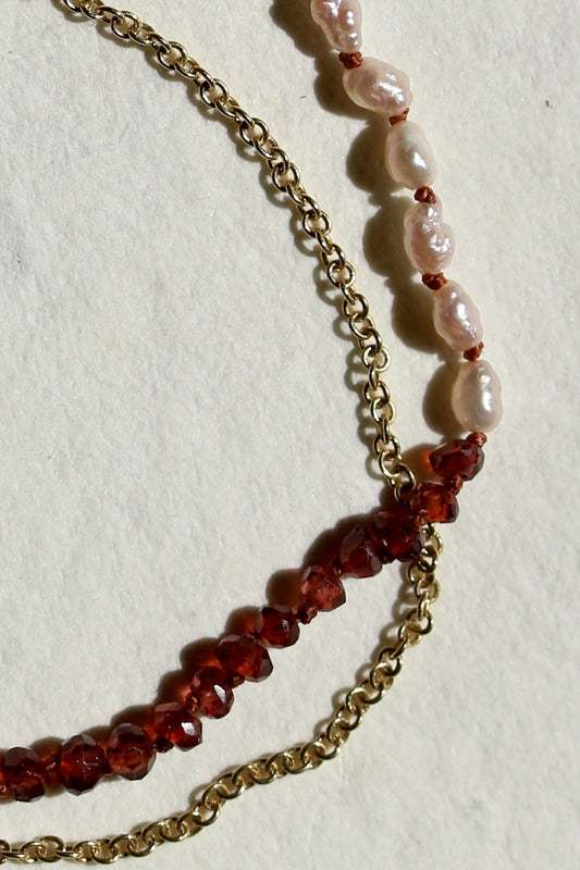 Gefacetteerde granaat & barok parel armband