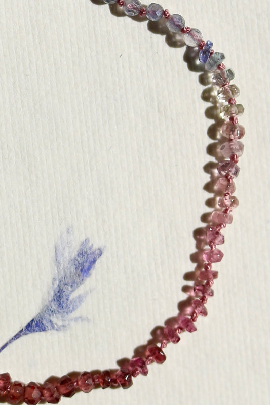 Gefacetteerde granaat, toermalijn & ioliet armband