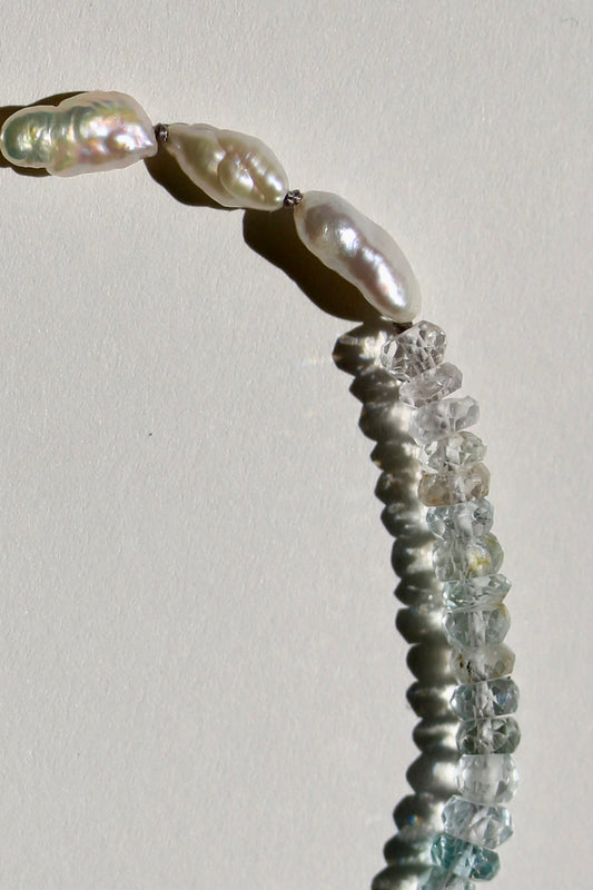Gefacetteerde aquamarijn & barok parel armband
