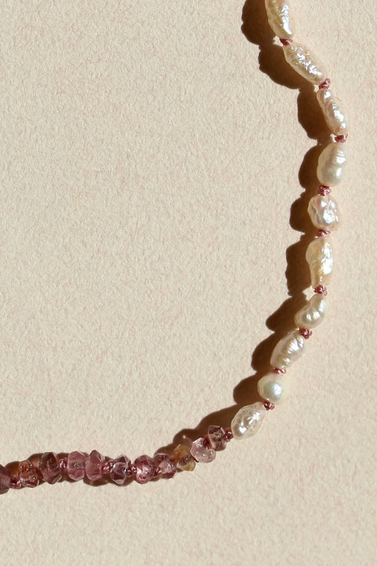 Gefacetteerde granaat, toermalijn & barok parel armband