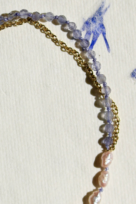 Gefacetteerde ioliet & barok parel armband